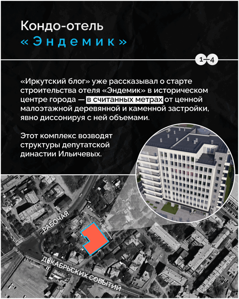«Иркутский блог» уже публиковал подробный пост об этом здании — проекте депутатской династии Ильичевых — ссылка