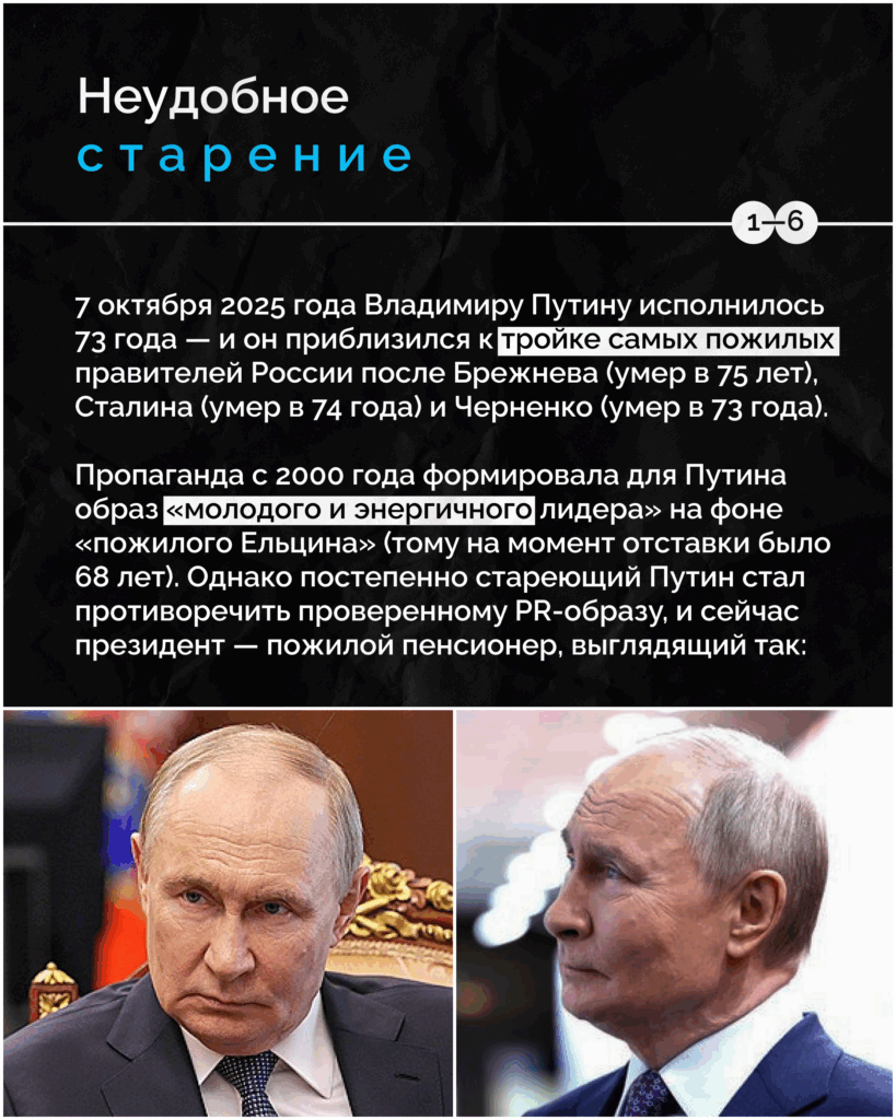 7 октября 2025 года Владимиру Путину исполнилось 73 года — и он приблизился к тройке самых пожилых правителей России после Брежнева.