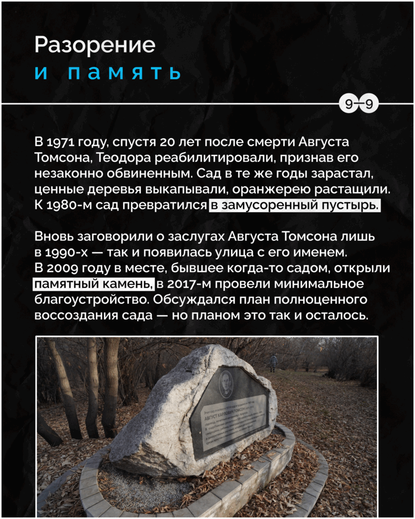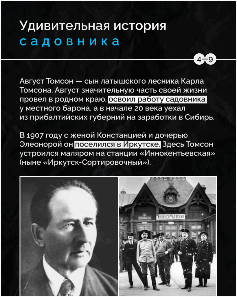 «Иркутский блог» продолжает серию постов с разбором названий городских улиц. На этот раз в центре внимания тихая и безлюдная улица Томсона со старинным забытым садом. История — в карточках: