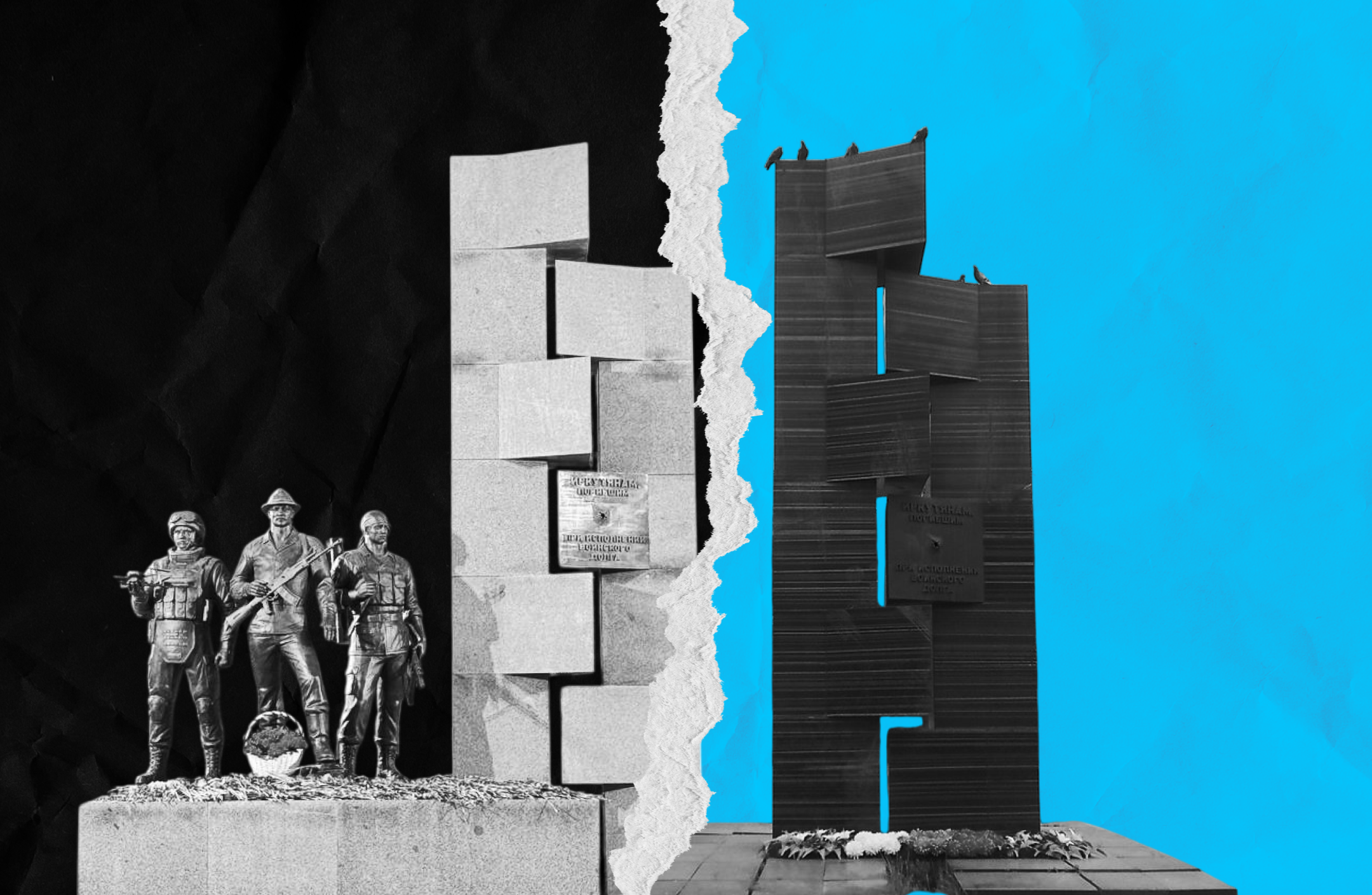 Антивоенный монумент на площади Декабристов превратили в провоенный