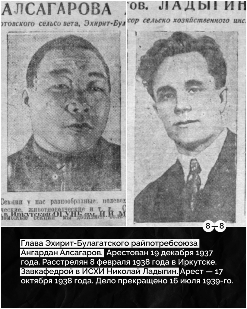 Более полные истории жизни и преследования этих людей, а также многие другие истории можно найти на сайте Игоря Яковлева и в его телеграм-канале «Репрессии в Восточной Сибири».