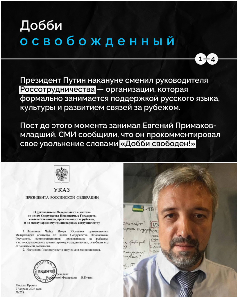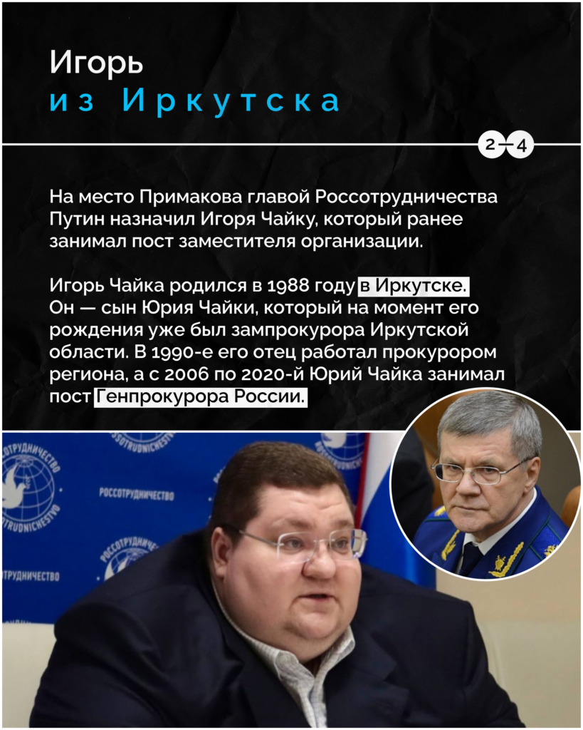 Президент Путин назначил уроженца Иркутска Игоря Чайку главой Россотрудничества. Подробности — в карточках.